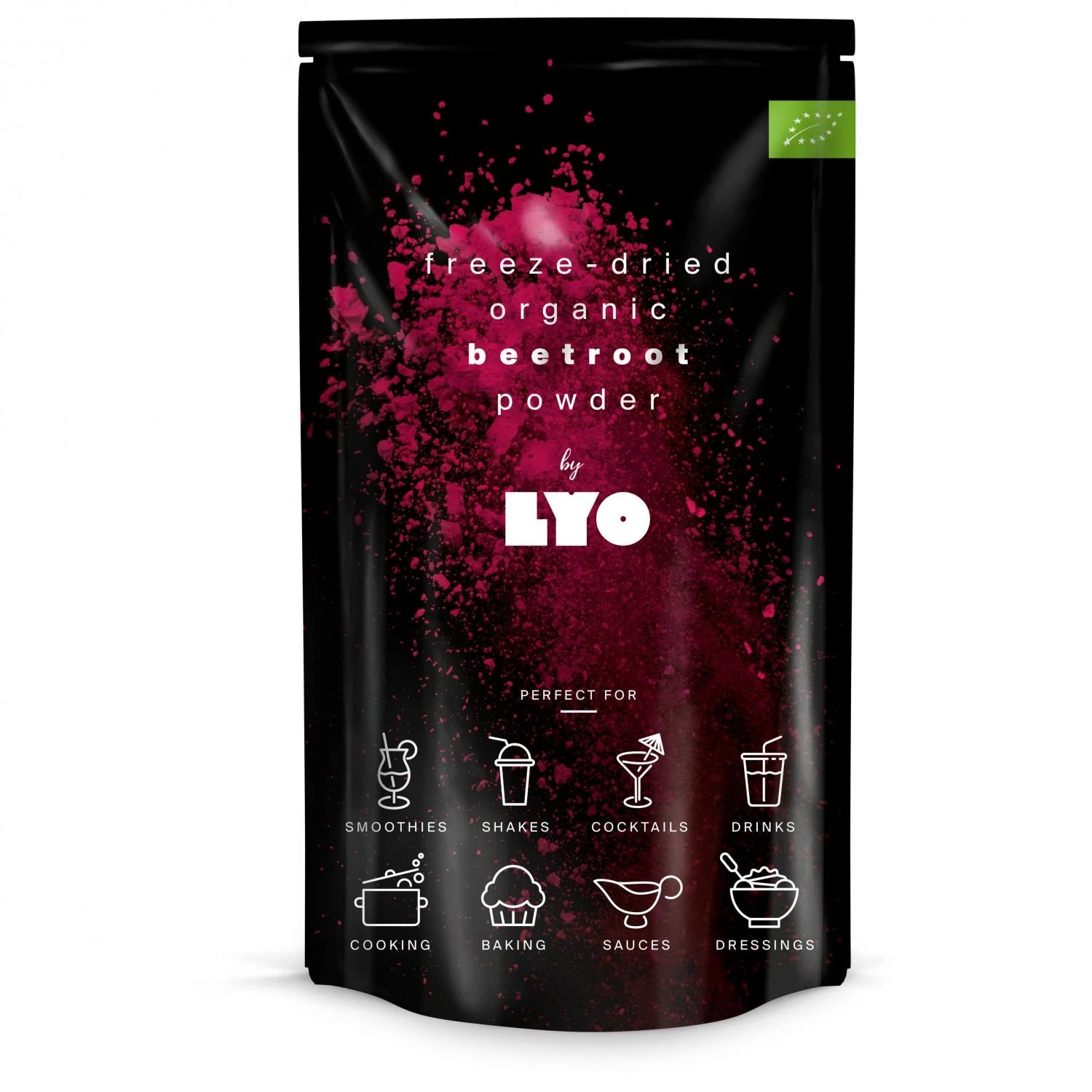 Der Beetroot Powder von Lyo Food besteht aus gefriergetrockneten und gemahlenen Rote-Beete-Rüben. Das sehr nährstoffreiche Pulver eignet sich für Smoothies als Nahrungsergänzung oder kann mit seiner starken Farbintensität für das eine oder andere Experiment in der Küche verwendet werden. Rote Beete enthält große Mengen Folsäure, Kalium, Magnesium, Phosphor, Eisen, Vitamin und vieles mehr. Die Gefriertrocknung(415 g Rohmasse=50 g Pulver) schont die Aromen, Vitamine und Mineralien dieser Power-Rübe.Zutaten: 100% Rote Beete
