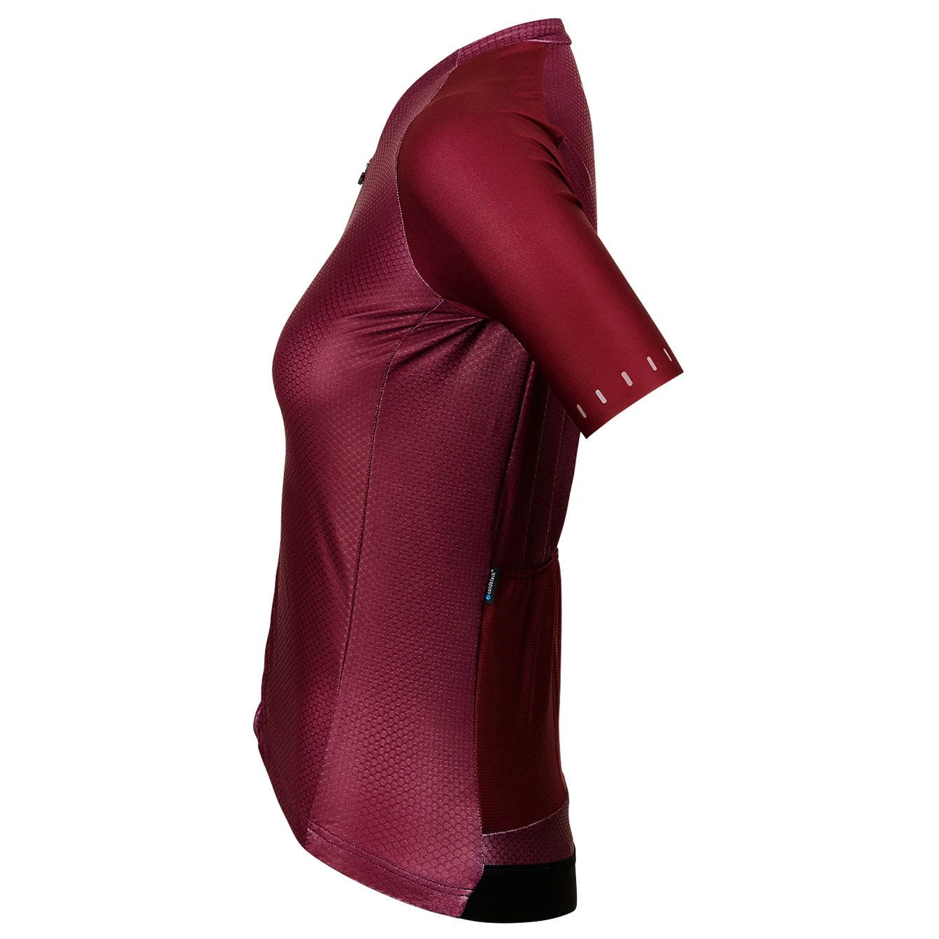 Mit dem Women’s Icon Coldblack Jersey von Bioracer bist Du auch an warmen Tagen möglichst komfortabel unterwegs. Denn das Coldblack-Material schützt vor Hitze und sorgt für einen kühlenden Effekt auf der Haut. Hierdurch kommst Du auch an langen Anstiegen und heißen Sommertagen nicht zu sehr ins Schwitzen. Zudem leitet das Gewebe Schweiß schnell vom Körper ab und sorgt für ein trockenes Tragegefühl auf der Haut. Mit den Raglanärmeln und den Silikongrippern am verlängerten Rücken ist stets für einen perfekten, enganliegenden Sitz gesorgt. Zudem bieten die drei Rückentaschen genügend Stauraum für Werkzeug, Riegel, Gels und Ersatzschlauch.