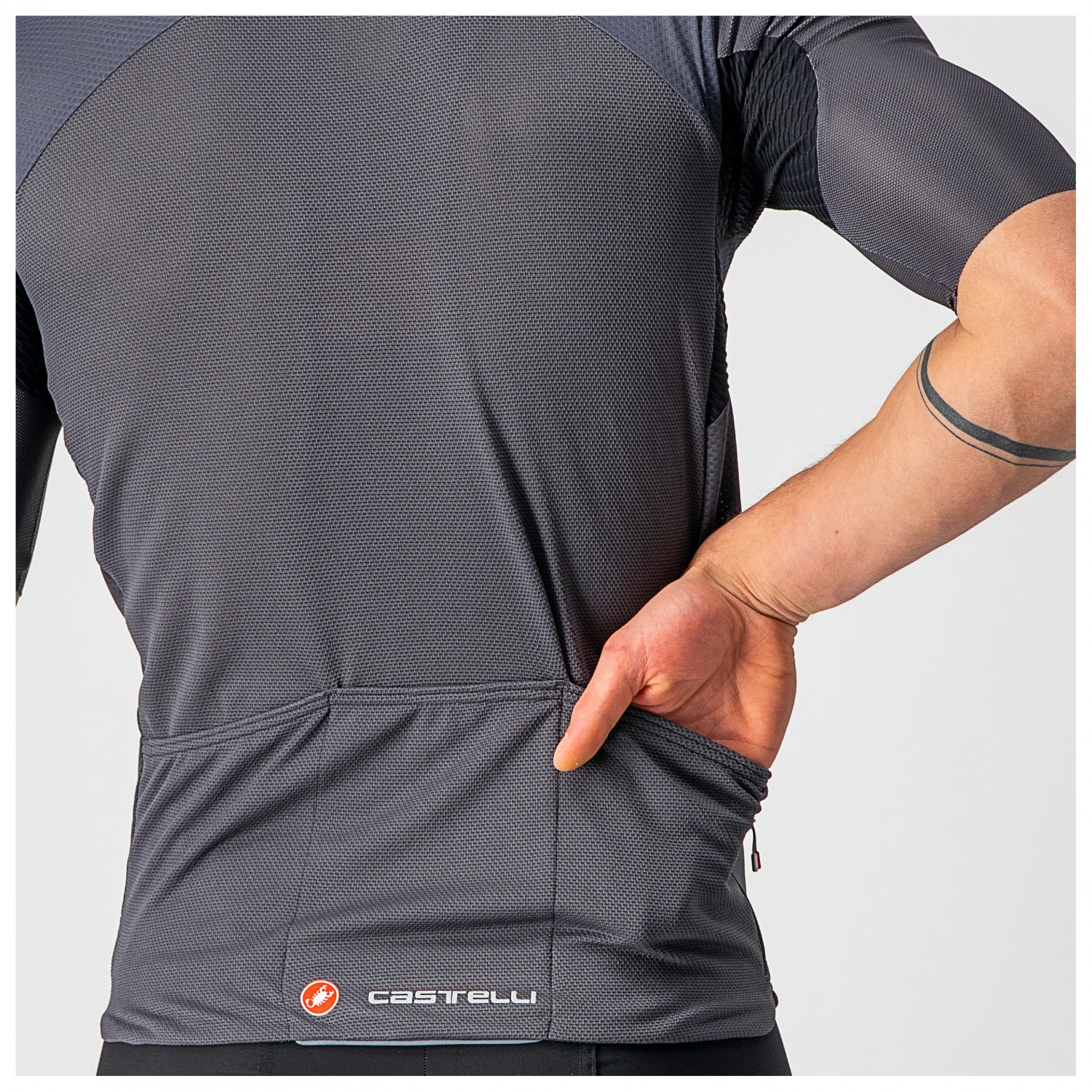 Das Endurance Elite ist eigenen Angaben zufolge Castellis Eines für Alles. Denn -der Name sagt es- für lange Ausfahrten muss die Bekleidung komfortabel sein, es müssen die wichtigsten Mitnehmsel verstaut werden können, und es sollte ein möglichst großer Temperaturbereich abgedeckt werden. Das Gewebe sorgt dafür, dass Du trocken bleibst und so hohen Tragekomfort genießt; das Stretch-Material garantiert, dass das Trikot sehr körpernah sitzt, ohne Dich dabei einzuengen. In einer zusätzlichen vierten, mit einem Reißverschluss gesicherten Rückentasche kannst Du auch Wertgegenstände transportieren. Und ein Silikongripper im Hüftbund sorgt dafür, dass das Shirt rutschfrei sitzt.