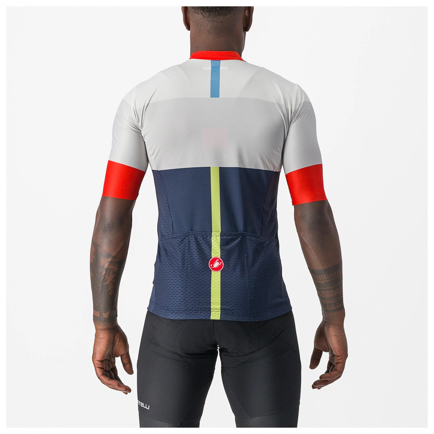 Beim Sezione– Rennradtrikot stimmts einfach rundum! Es ist ein ideales Allround-Trikot für jede Deiner Touren, komfortabel beim Training, schnell bei rasanten Gruppenausfahrten; dabei ist es immer leicht: 110g in Größe M! Das Strada Micromesh-Stretch– Material sorgt für beste Belüftung und ein erstklassiges Feuchtigkeitsmanagement, und gleichzeitig für einen idealen Sitz des Jerseys. Anatomisch geformte Seiteneinsätze machen den Übergang zum Rückenbereich so geschmeidig wie möglich und verbessern die Passform so nochmals. Damit das Trikot nicht hochrutschen kann, ist der Hüftbund innen mit einem Silikongripper versehen. Der durchgehende Front-Reißverschluss ist ein YKK Vislon-RV, und der ist der am einfachsten zu bewegende Zipper auf dem Markt. Easy!
