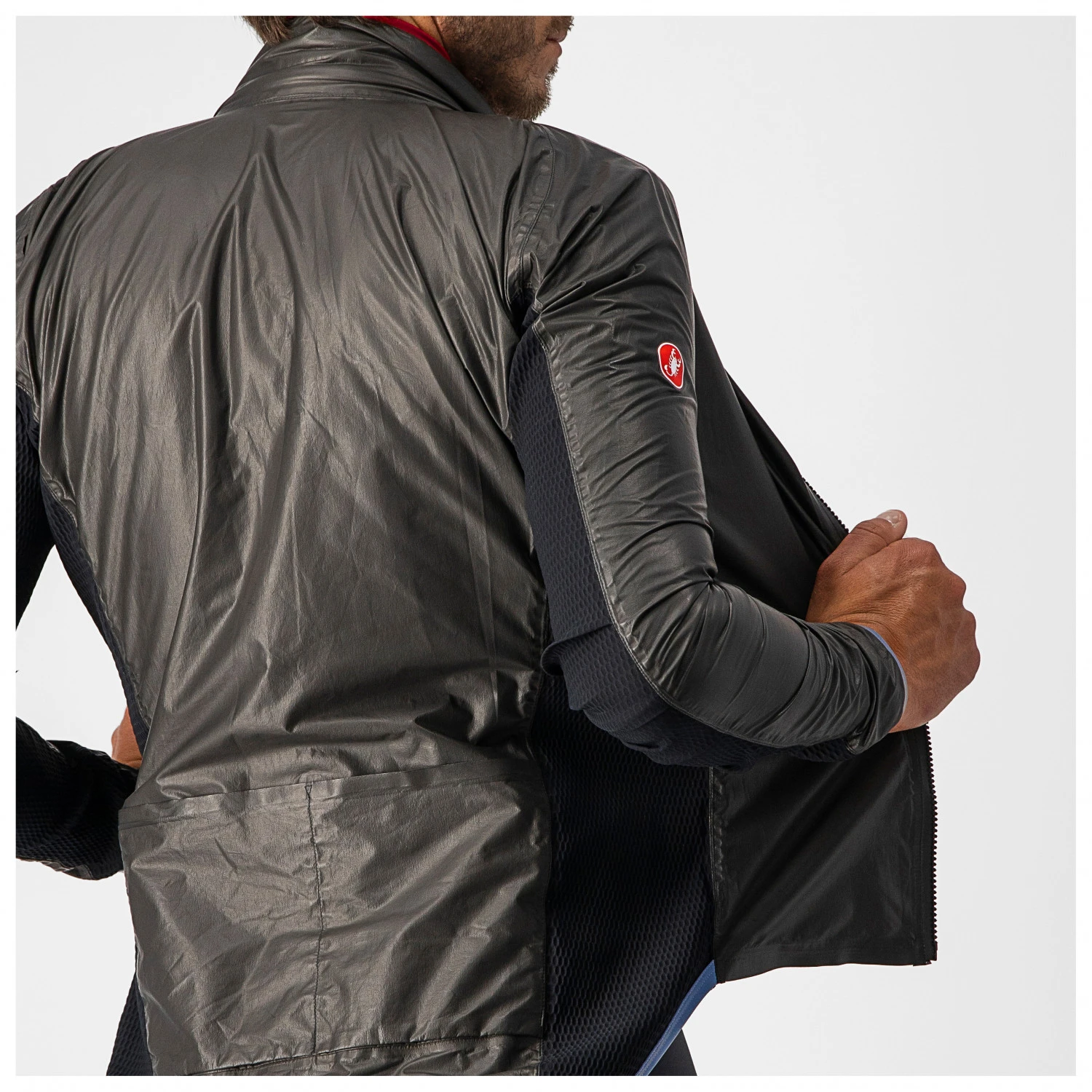 Mit der Slicker Pro von Castelli bist Du für sämtliche Abscheulichkeiten, die der Wettergott Dir auf Deinen Touren entgegenschleudert, gewappnet! Die Jacke besteht aus ultraleichtem, 2-lagigem Material mit einer PFC-freien, mikroporösen Polyurethan-Membran, und ist komplett wasser- und winddicht, dabei aber atmungsaktiv. Dadurch kann keine Feuchtigkeit von außen eindringen, Schweiß wird aber abgeleitet und verdampft an der Außenseite. Dem gefürchteten Windchill-Effekt gibt die Slicker Pro ebenfalls keine Chance.