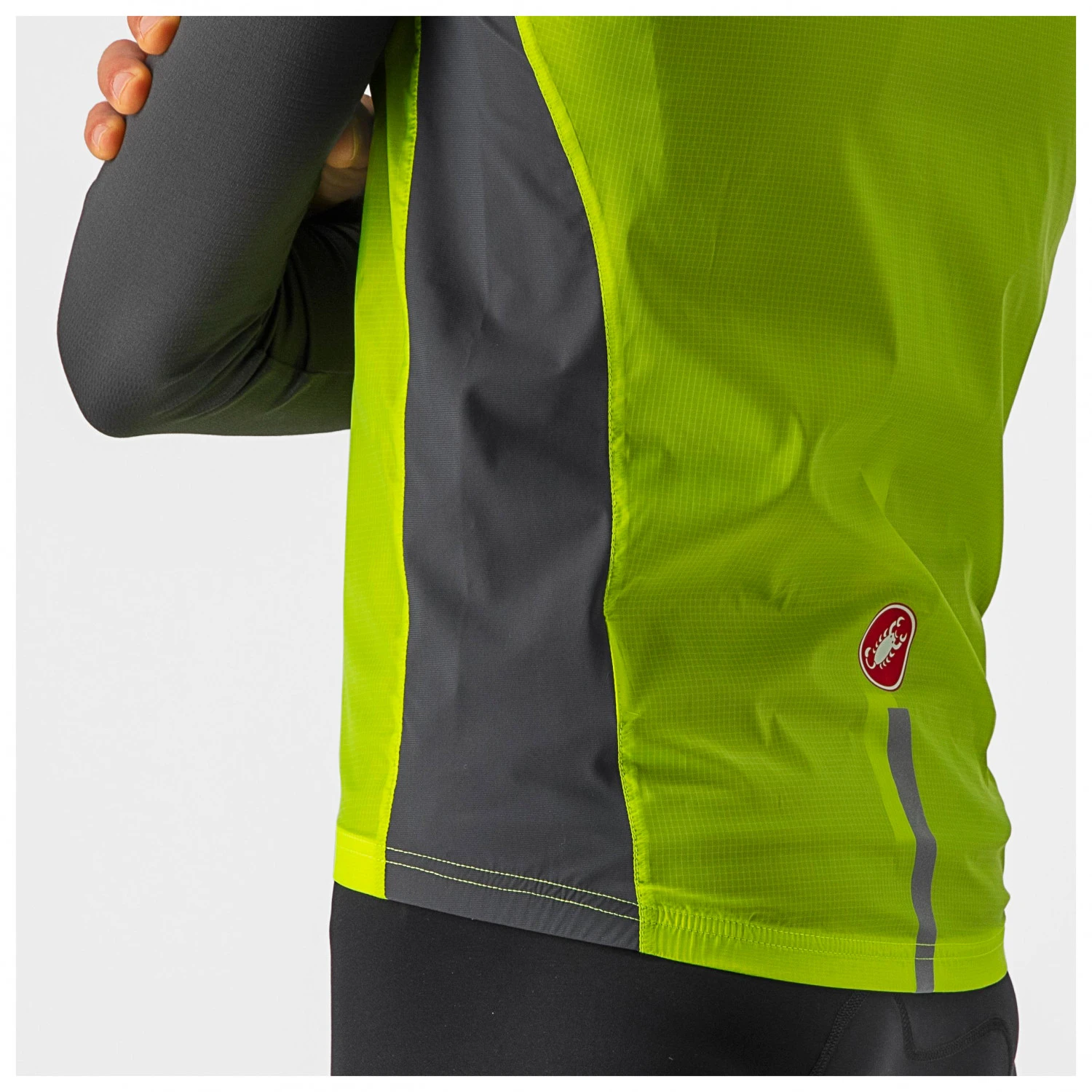 Die Squadra Stretch Vest von Castelli ist so klein und leicht, dass sie gar nicht auffällt. Die vielseitige Weste kann bestens komprimiert werden und findet so wirklich überall Platz. Besonders an kühlen Tagen oder auf rasanten Abfahrten spielt sie ihre volle Stäke aus. Das Plus an Wärme macht einen großen Unterschied und sorgt für beste Bedingungen auf dem Rad.