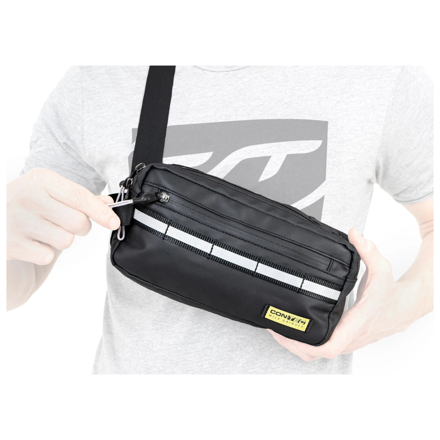 Für zusätzliches Equipment befinden sich noch Materialschlaufen an der Front, welche mit ihren reflektierenden Elementen für eine bessere Sichtbarkeit sorgen. Die Tasche kommt mit einem praktischen Trageriemen. Dieser verwandelt Sie im Handumdrehen in eine Schultertasche oder Bauchtasche. So hast Du alles Wichtige auch bei einer Rastpause oder dem Besuch im Café mit dabei!