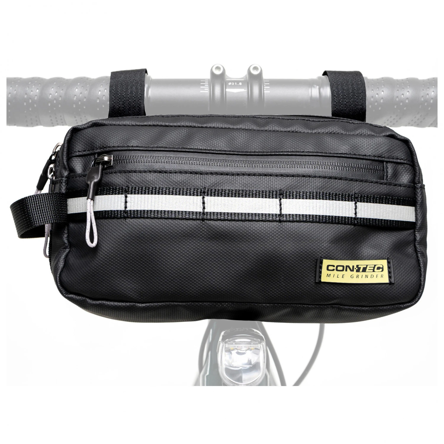 Die Contec Lenkertasche Mile Grinder Race 3 aus wasserdichtem Polyester ist mit einem Volumen von 3 Litern ideal für Bikepacking mit wenig Gepäck oder für das Stadtrad geeignet. Das Frontfach ist mit Fleece ausgekleidet und bietet einen sicheren Aufbewahrungsort für die Sonnenbrille oder das Smartphone. Im Hauptfach sorgen Meshfächer für eine gute Übersicht. Die Tasche wird mittels Klettriemen am Lenker befestigt.