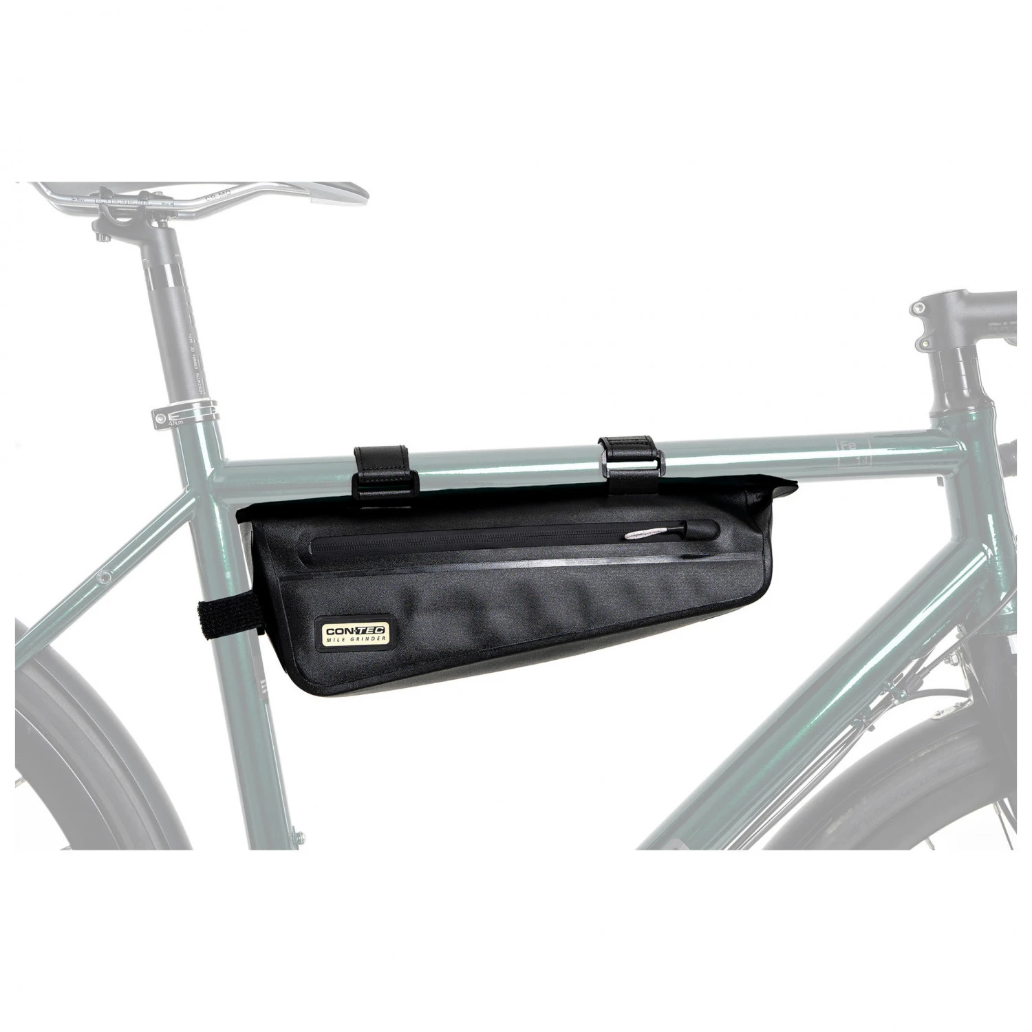 Die Rahmentasche Mile Grinder Frame Bag 2.8 von Contec ist eine praktische Rahmentasche für das Bikepacking. Sie wird mit Klettriemen befestigt und wackelfrei im Rahmendreieck fixiert. Das TPU-beschichtete Polyester ist wasserdicht und hält den Inhalt trocken. Über den langen Reißverschluss ist ein einfacher Zugriff auf den Inhalt möglich. Die Rahmentasche eignet sich am besten für schwerere Gegenstände, da sich dieses am besten möglichst zentral am Fahrrad befinden sollte, um die Fahreigenschaften nicht zu sehr zu beeinflussen.