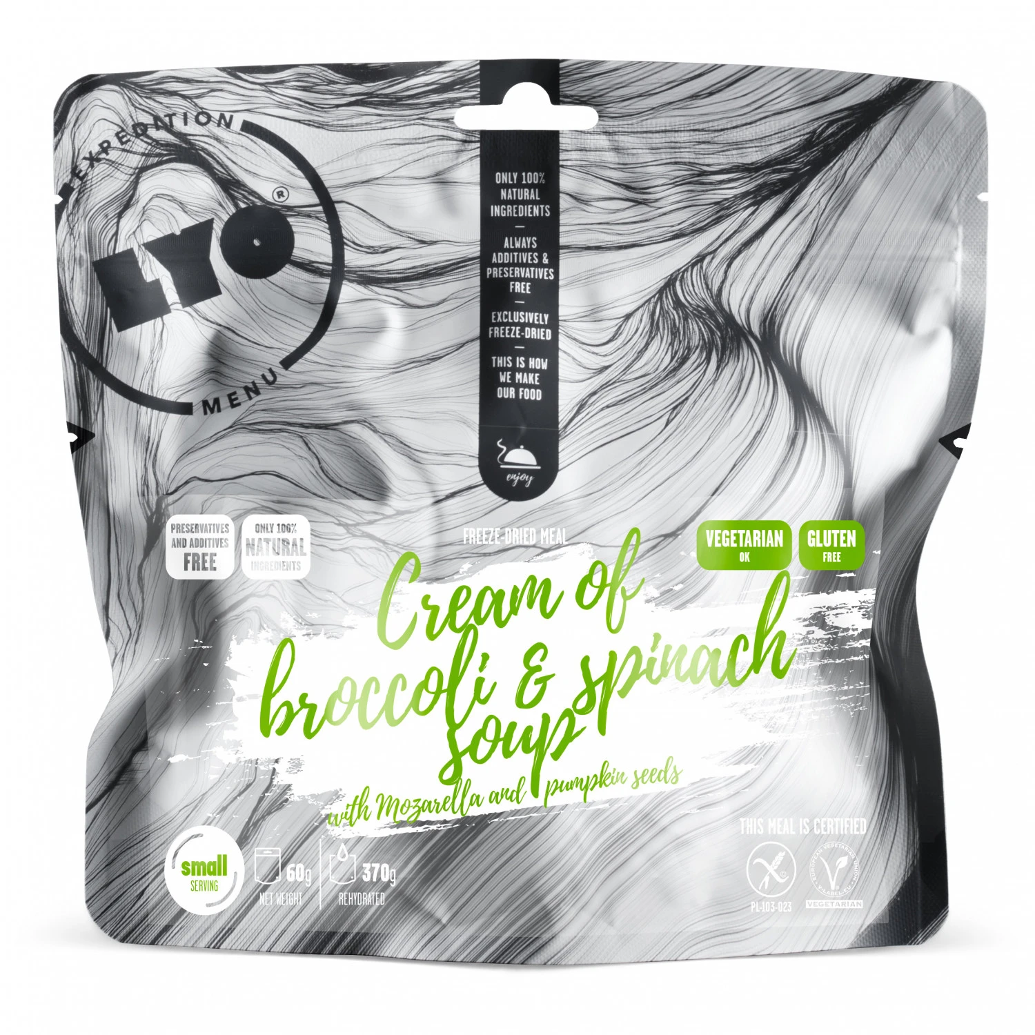 Das Gericht Cream of Broccoli and Spinach Soup von Lyo Food kommt mit auf Outdoorabenteuer! Mit Wasser schnell zubereitet bekommst Du hier ein leckeres, vegatarisches und glutenfreies Gericht für unterwegs auf Rucksacktour und Expeditionen. Lass es Dir schmecken!