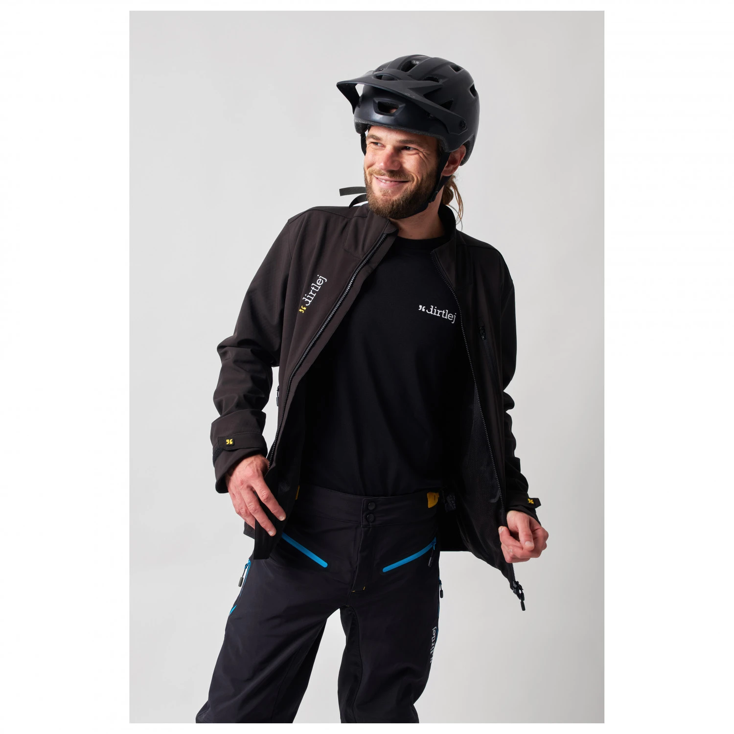 Gut ausgerüstet mit der Weathershield Warm Fahrradjacke von dirtley. Die Softshelljacke ist wasserabweisend und isoliert die körpereigene Wärme richtig gut. Auf dem Bike ist sie super geeignet, da der Materialmix eine ganz natürliche Atmungsaktivität hat, sodass Du einen trockenen Tragekomfort in vollen Zügen genießen kannst. Einen extra hohen Tragekomfort bekommst Du durch das angenehm zu tragende Polyester im Jackeninneren sowie den Stehkragen und die seitlich verlängerten Ärmel. Dadurch ist die Jacke gemütlich und Du wirst an besonders empfindlichen Stellen gut geschützt. Die Ärmelbündchen sind außerdem mit einem Klettverschluss enger zu stellen, sodass auch dort kein kalter Wind reinziehen kann.