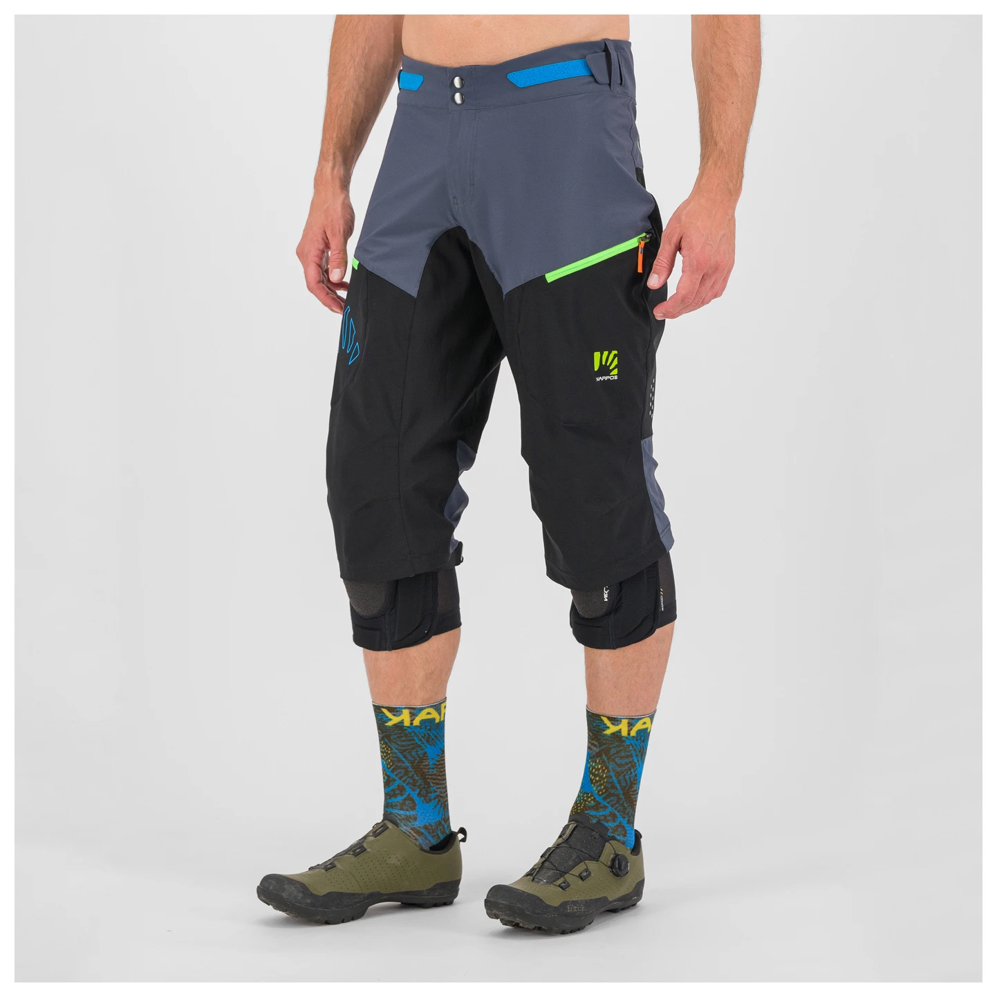 Macht Dein Bikeabenteuer mit, die Radhose Val Federia Evo Short von Karpos! Ihr Materialmix bietet eine hohe Atmungsaktivität und einen soliden Nässeschutz. Dank verstellbarem Bund sitzt die Hose stets sicher. Die Taschen lassen sich auch zum Belüften benutzen. Das minimalistische Design verhindert, dass Du Dich am Bike verhedderst. Einfach durchdacht!
