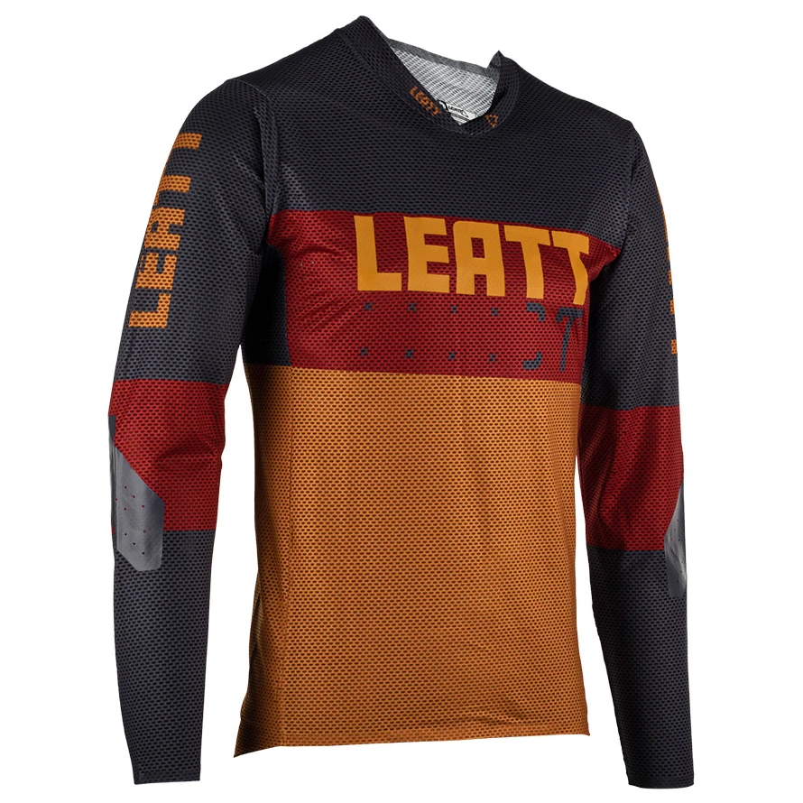 Bequem, leicht und stylisch! Das Langarmshirt MTB Gravity 4.0 Jersey von Leatt ist der perfekte Begleiter für Deine MTB-Touren! Das luftige Mesh-Gewebe des Trikots wurde mit robustem, schmutzabweisendem MoistureCool Stretch kombiniert, um für hohe Atmungsaktivität und effektiven Feuchtigkeitstransport zu sorgen. Die Ellbogen des MTB-Trikots sind mit Brush Guard verstärkt, das federleicht ist und die Kratz- und Abriebfestigkeit erhöht. Das Shirt kann mit oder ohne Schutzweste getragen werden und ist natürlich auch mit einem Neckbrace kompatibel. Weitere details wie der Logoprint, der verlängerte Rücken und die reflektierenden Details machen alles komplett!