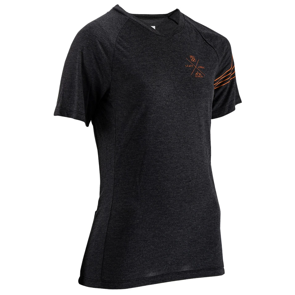 Das Women’s MTB All Mountain 2.0 S/S Jersey von Leatt ist ideal für alle Moutainbikerinnen, die nach einem komfortablen und funktionalen T-Shirt suchen. Es besteht aus einem leichten, atmungsaktiven und schnelltrocknenden Material aus Kunstfaser und Tencel. Darüber hinaus ist das Shirt temperaturregulierend, sodass überschüssige Wärme einfach entweichen kann.