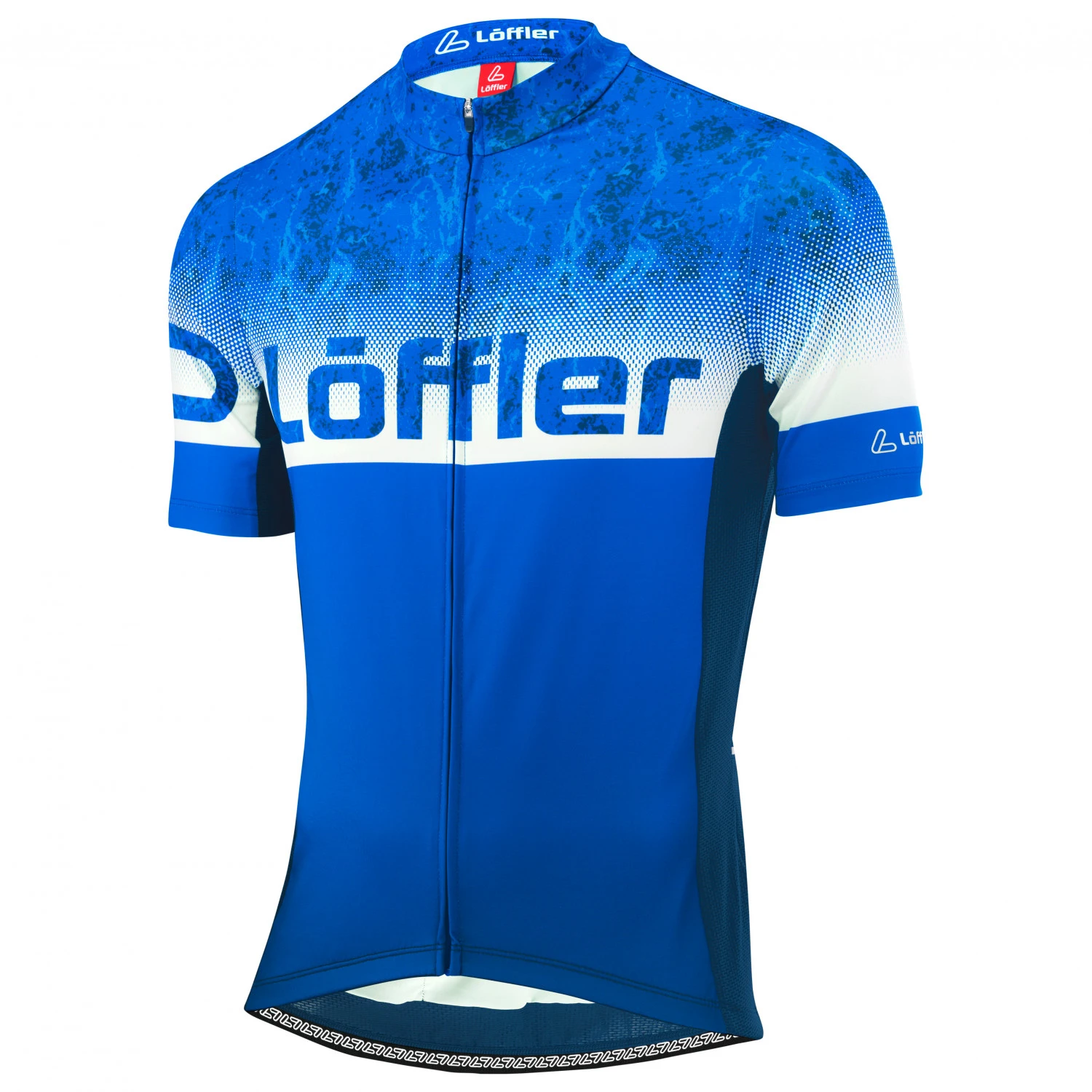 Das sportliche Bike Jersey Fullzip Messenger II Radtrikot von Löffler ist mit einem Allover-Print verziert und verfügt über eine dreigeteilte Rückentasche. Reflektoren, ein kurzer Stehkragen und der durchgehende Frontreißverschluss machen das körpernahe Trikot komplett.