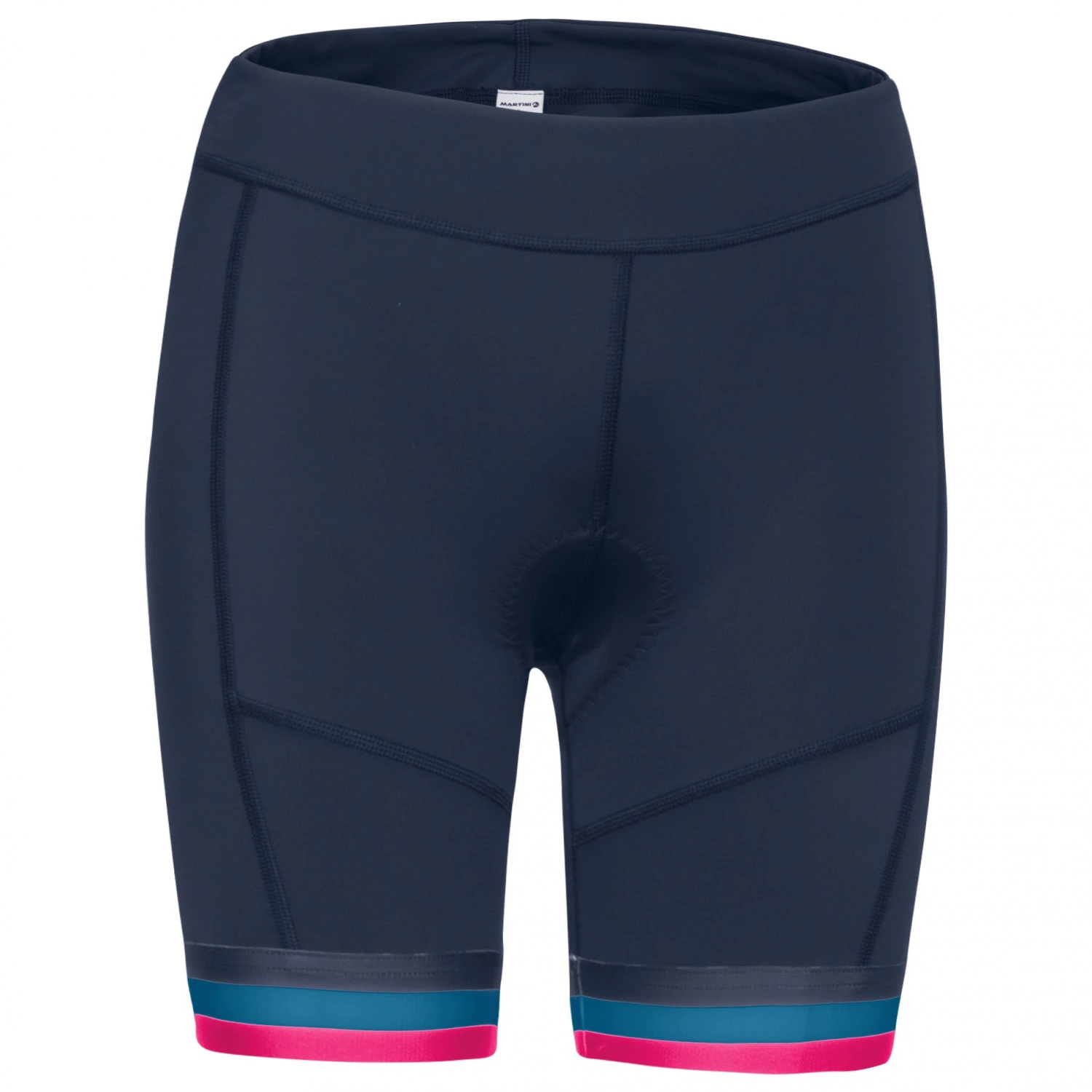Ob im Flachland oder in den Bergen unterwegs, liefert die kurze Radhose maximalen Tragekomfort und hohe Bewegungsfreiheit. Die ergonomische Schnittführung sorgt zusammen mit dem Elasthan-Anteil im Gewebe für eine ideale Passform. Der elastische, breite Bund macht sie noch bequemer. Die Beinabschlüsse mit Silikoninnenseite sorgen für einen guten Sitz, damit sich die Beinenden beim Radfahren nicht hochrollen oder verrutschen. Dank Polsterung hält man auf ausgedehnten Strecken länger durch. Das kontrastfarbene Design macht sie zum athletischen Hingucker!