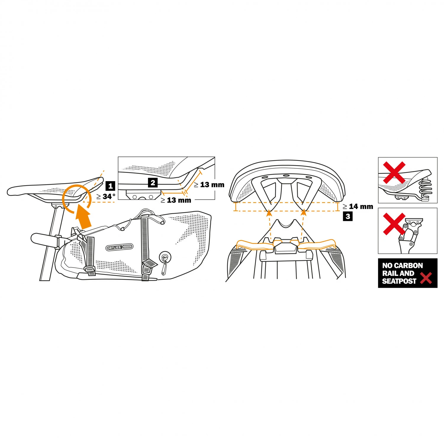 Solltest Du dennoch Probleme bei der Montage haben, achte darauf, dass das Seat Lock System auf der Tasche möglichst weit nach vorne (zur Sattelstütze hin) verschoben ist und zur Erstmontage die vier Schrauben gelockert sind. So lässt sich die Tasche am einfachsten montieren und eine passende Position finden.