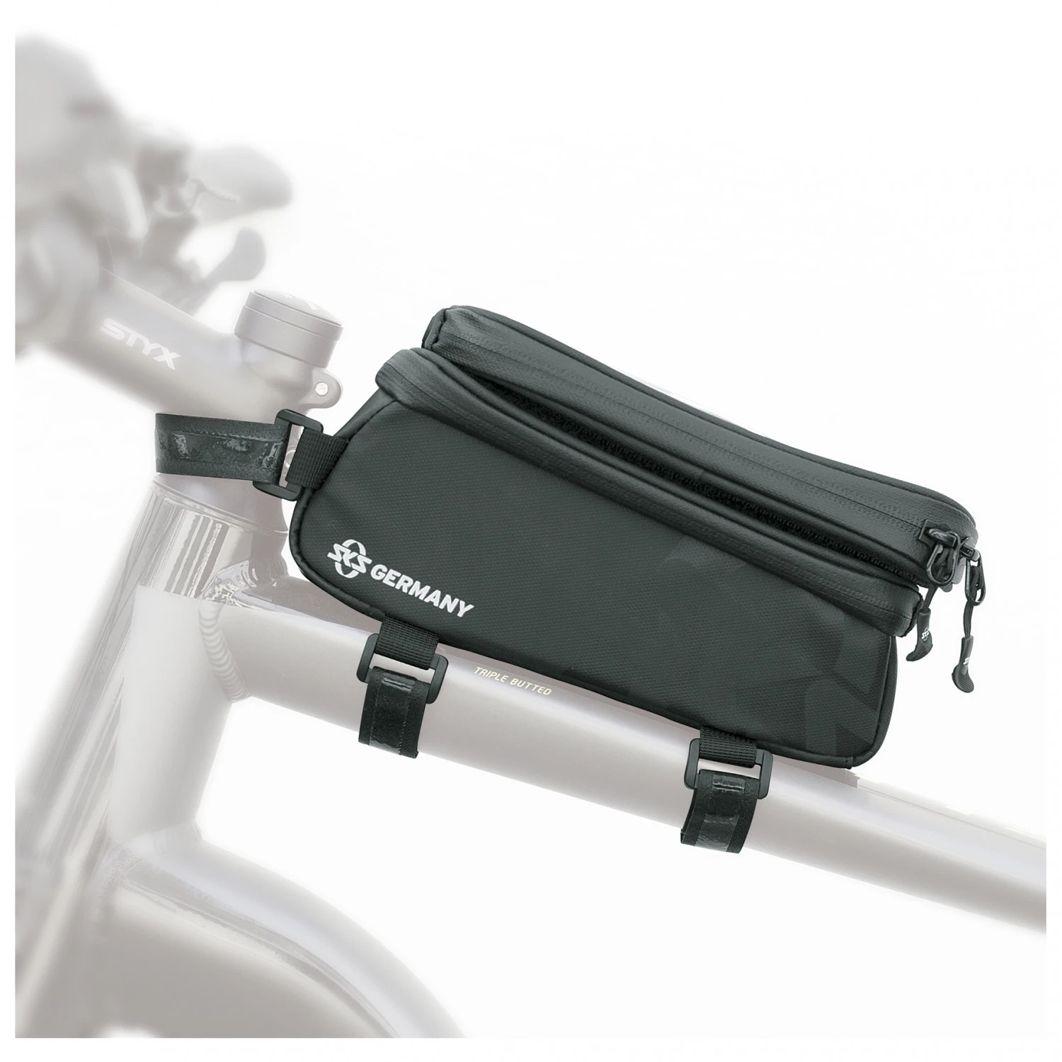 Strapazierfähige Materialien aus gummiertem, wasserabweisendem Gewebe machen die Oberrohrtasche Explorer Smart von SKS zum treuen Begleiter für jede Radtour. Besonders praktisch ist das obere Handyfach mit integrierter Kabeldurchführung für Kopfhörer. Durch die transparente Schutzfolie lässt sich das Smartphone bequem bedienen. Das darunter befindliche Extrafach ist perfekt für die Unterbringung einer flachen Powerbank, mit der das Smartphone während der Fahrt geladen werden kann.