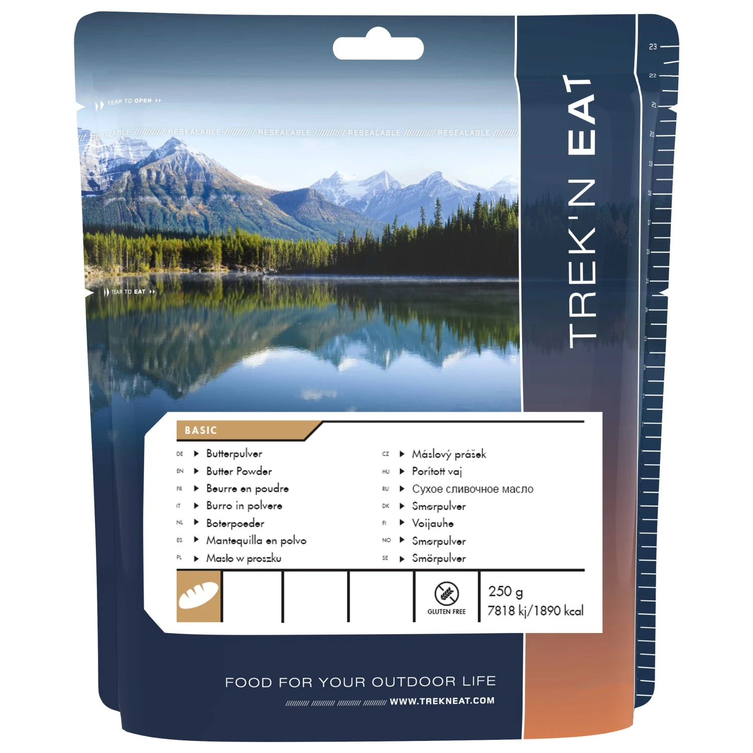 Wer unterwegs auf keinen Fall auf Butter verzichten kann, der sollte Butter Powder von Trek’n Eat mit auf Tour nehmen. Die Zubereitung ist ganz einfach, indem man das Pulver mit circa 100 ml kaltem Wasser anrührt und es anschließend 5 Minuten stehen lässt. Dann ist die streichfähige Butter fertig.
