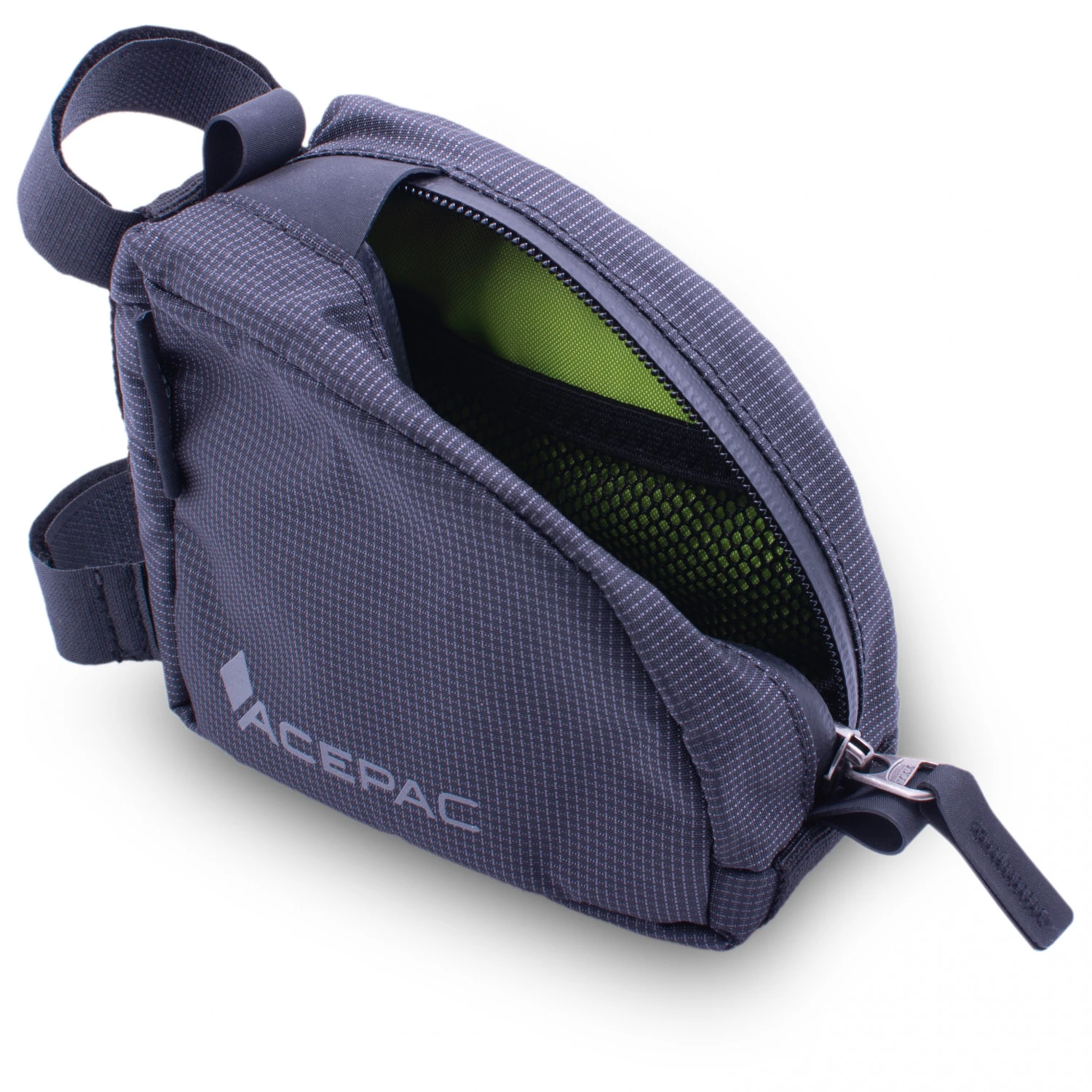 Am Rahmen befestigt, kann man in der kleinen, kompakten und robusten Acepac Tube Bag Rahmentasche kleinere Sachen sicher und griffbereit verstauen. Das Material der Tasche ist aus PU-beschichtetem Nylon, das mit einer Wassersäule von 1.500 mm den Inhalt bei schlechtem Wetter trocken hält. Dank Reißverschlussschieber mit Hypalon-Puller kann die Tube Bag auch einhändig und mit Handschuhen abrutschsicher und schnell geöffnet werden.