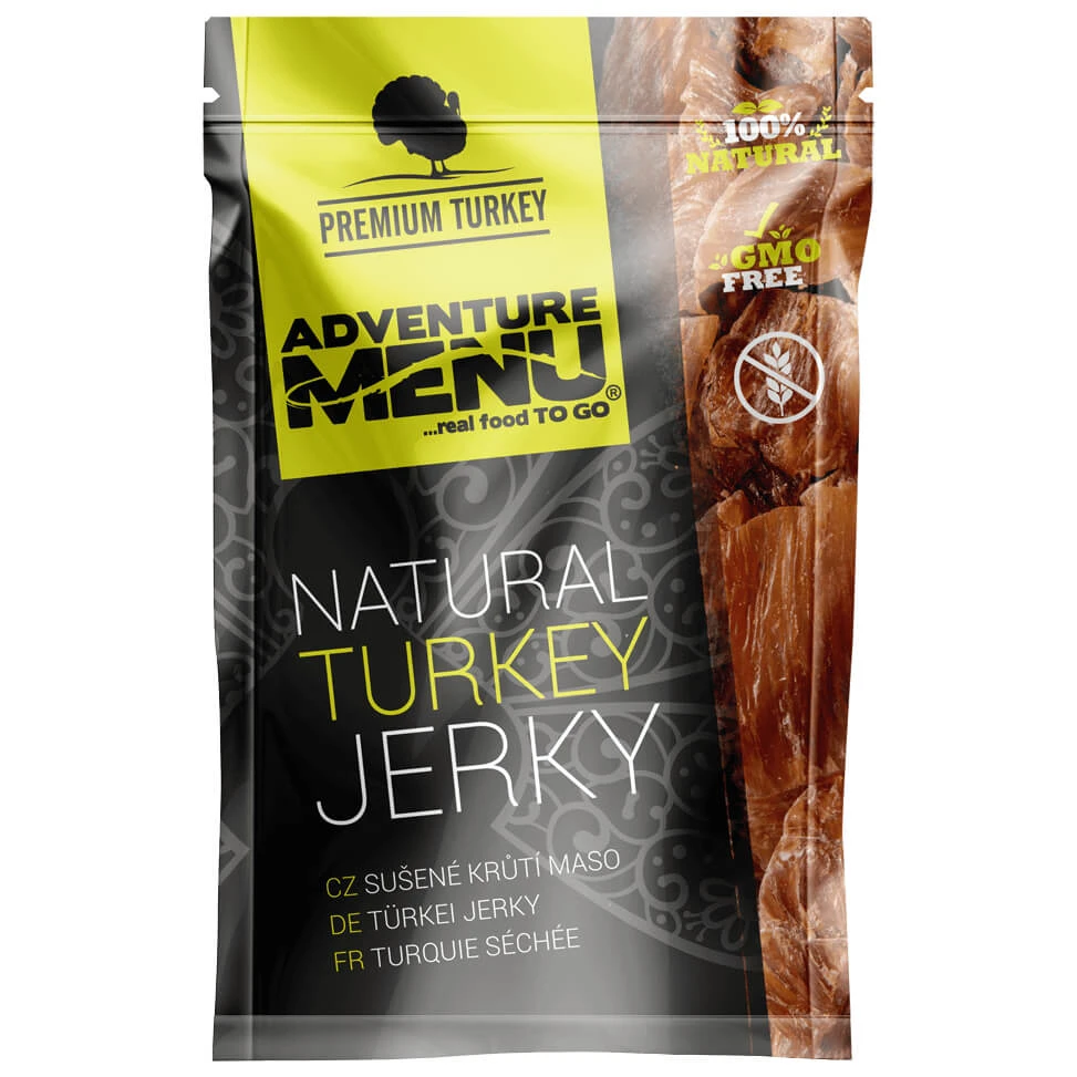 Das Turkey Jerky von Adventure Menu ist ein natürliches Puten-Trockenfleisch. Es eignet sich perfekt als Proteinversorgung beim Klettern, Bergsteigen, auf Expeditionen oder als Snack zwischendurch bei allen möglichen Aktivitäten. Um dem Konsumenten ein möglichst unverfälschtes und ehrliches Produkt zu bieten, sind lediglich Salz aber keine künstlichen Aromen, Zusatzstoffe,… beigemischt. Mit einem Proteingehalt von fast 77% ist es ideal für die Muskelregeneration geeignet.Zutaten: Putenfleisch(320g Rohfleisch ergeben 100 g Trockenfleisch), Salz
