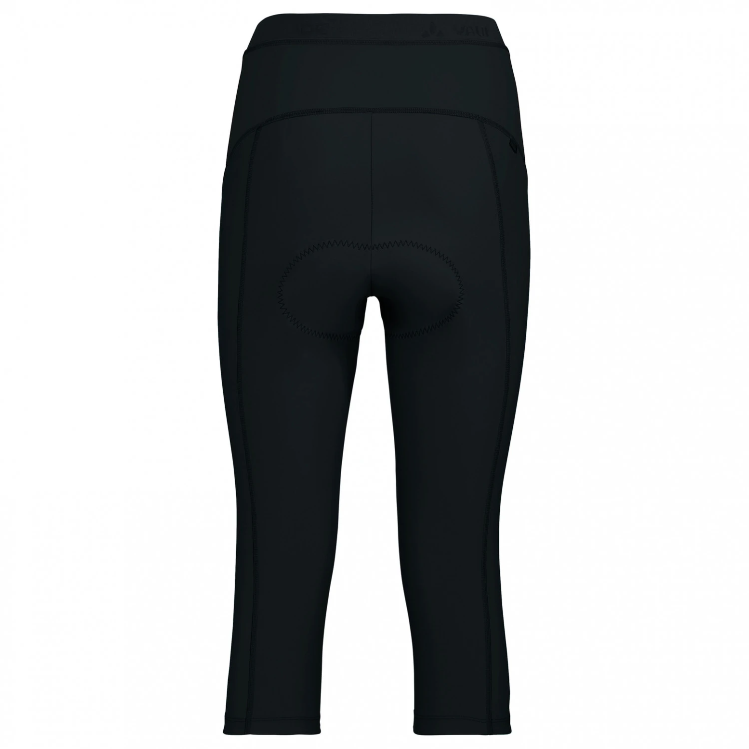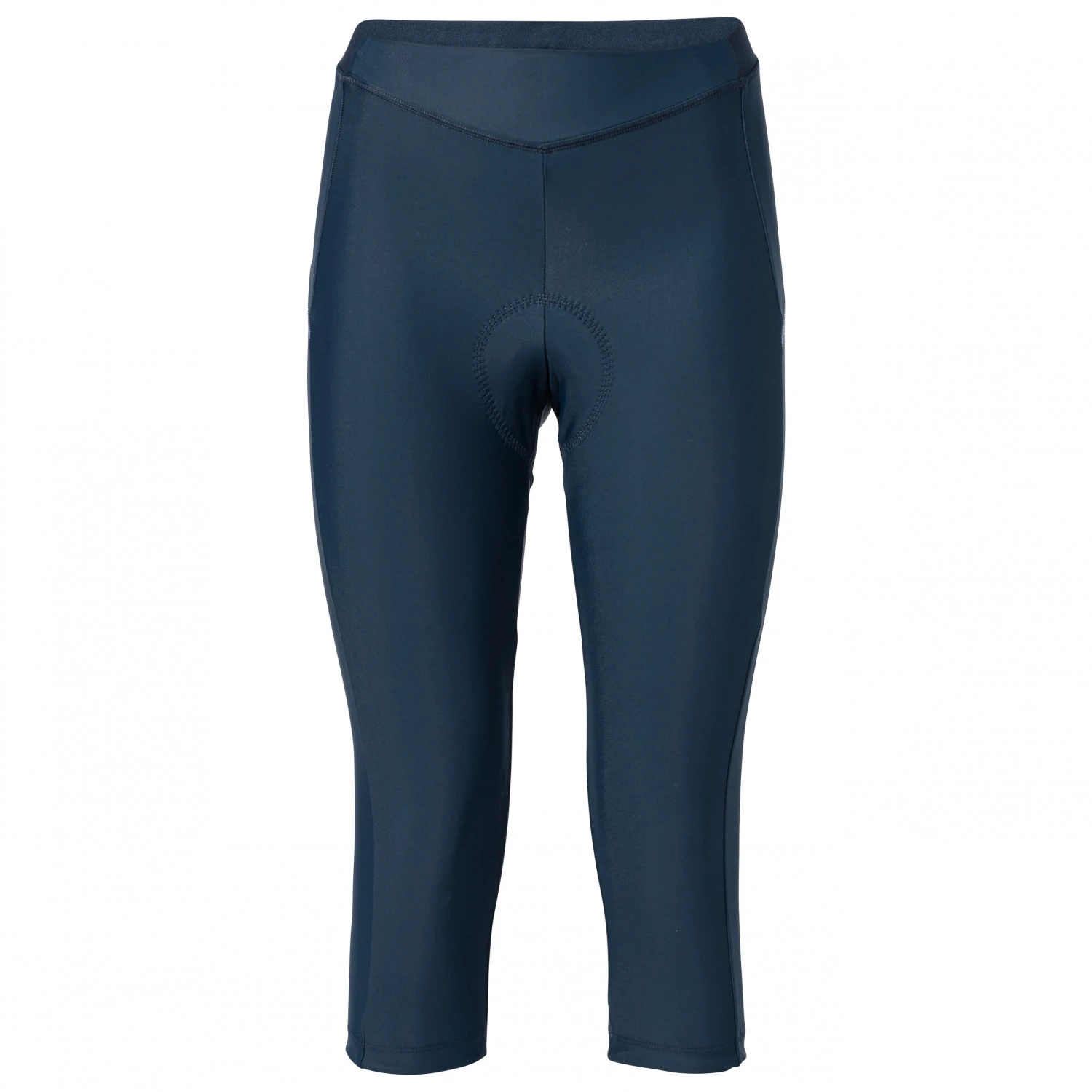 Mit dreiviertellangen Beinen und einem angenehmem Sitzpolster kommt die Women’s Advanced 3/4 Pants IV von Vaude daher. Durch das elastische Material und den körpernahen Schnitt liegt diese Radhose gut am Körper an. Hierdurch ist eine unangenehme Faltenbildung ausgeschlossen und die Gefahr am Sattel oder Fahrradrahmen hängenzubleiben wird auf ein Minimum reduziert. Durch den breiten Gummibund sitzt die Hose dabei immer sicher und angenehm. Zusätzlich ist das Material besonders atmungsaktiv und schnelltrocknend, sodass entstehende Feuchtigkeit schnell an die Umgebungsluft abgegeben werden kann.