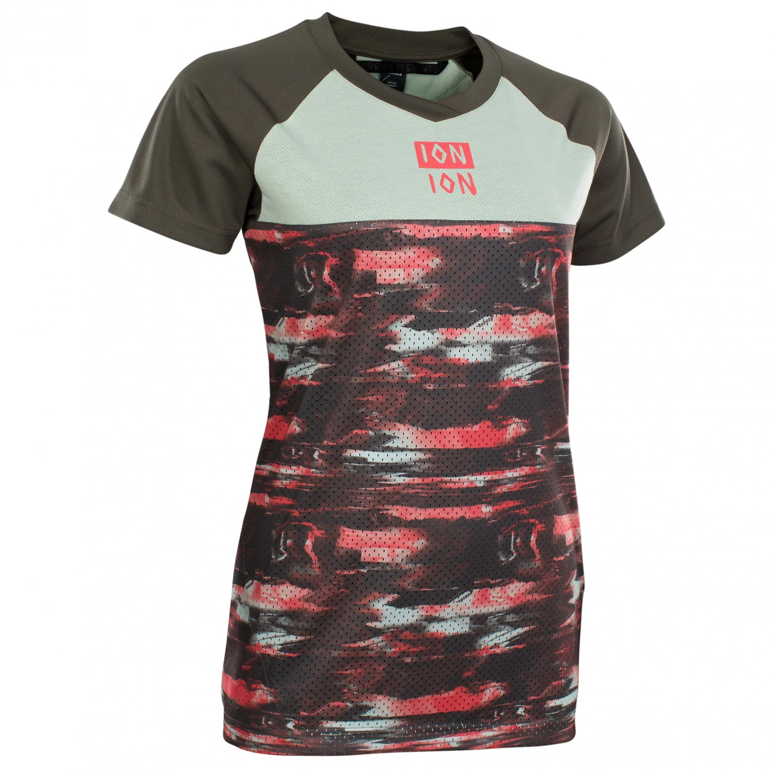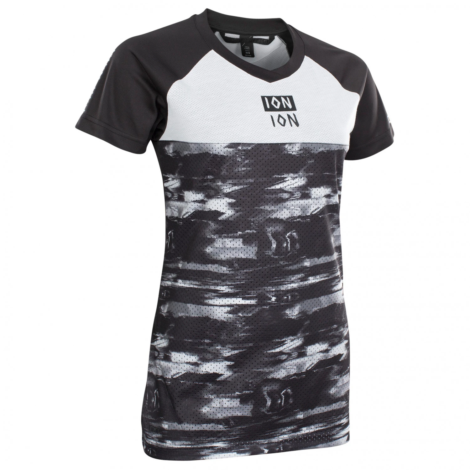 Das Women’s Tee S/S Scrub AMP Distortion von ION sorgt mit seinem atmungsaktiven Material auch bei langen Anstiegen für ein möglichst trockenes Gefühl auf der Haut. Der Gewebemix an der Front besteht aus einer Mischung aus recyceltem Polyester und Bio-Baumwolle. Dies erzeugt einen hohen Tragekomfort.