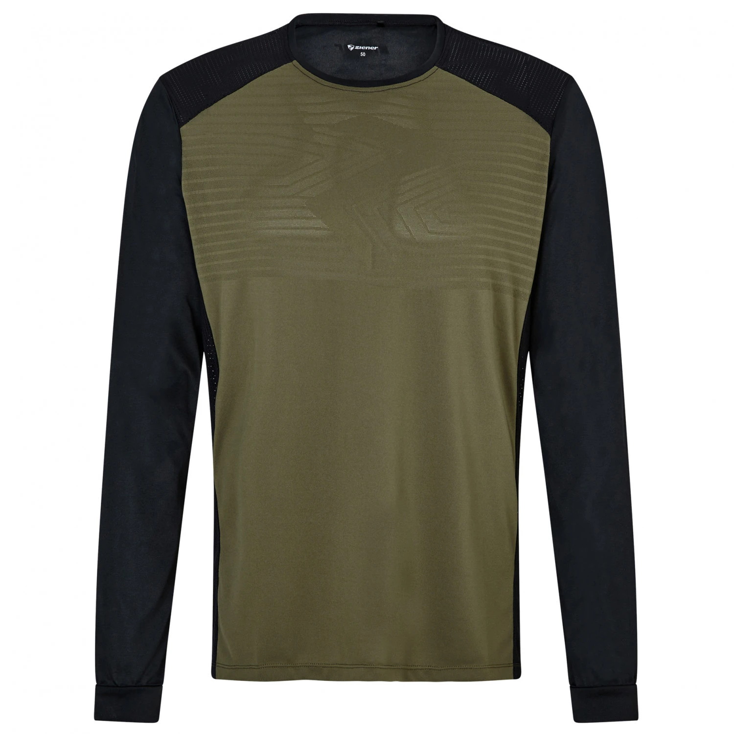 Cool gestylt, den Trails entlang durch den Wald – mit dem Nabisco von Ziener. Das Langarmshirt besteht aus einem atmungsaktiven und sehr elastischen Material, dadurch ist ein tolles Tragegefühl und eine uneingeschränkte Bewegungsfreiheit in jeder Situation gegeben. Mesh-Einstätze sorgen bei anstrengenden Passagen für die nötige Frischluft und das eingewebte Design mit dem Spruch „Can you ride the Line“ am Ärmel für einen ganz besonderen Look.